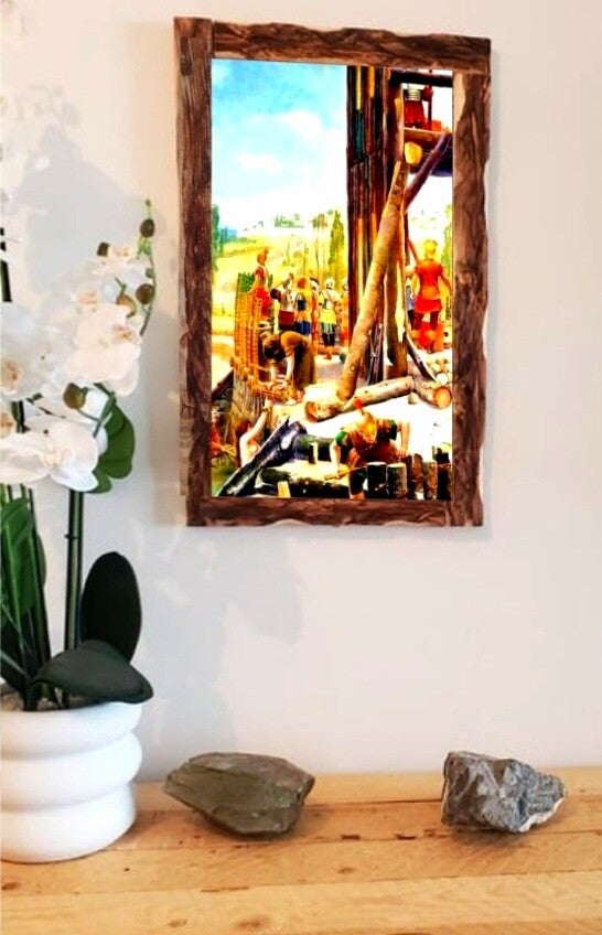 🪓 Tableau décoratif – Scène d’artisanat ancien sur toile tendue (cadre bois)