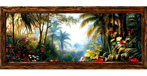 🍃Tableau panoramique jungle tropicale avec cadre en bois